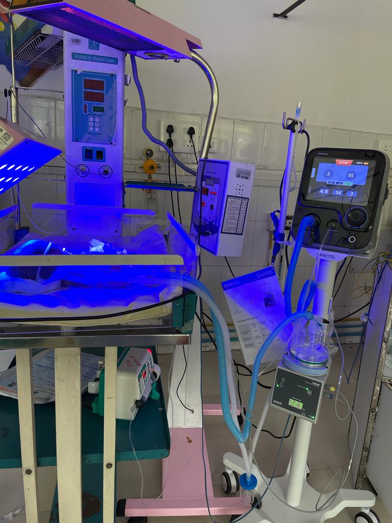 InnAccel Technologies’ Saans is a groundbreaking, infrastructureindependent, low-skill, and non-invasive neonatal Continuous Positive Airway Pressure (CPAP) device. Designed to offer shortterm breathing support for infants with Respiratory Distress Syndrome (RDS), Saans is a gamechanger in non-ICU settings. Its multi-powered, multi-mode design makes it exceptionally versatile, with a manual powering option and compatibility with standard oxygen sources. This device was conceptualized and developed in partnership with the Consortium of Affordable Medical Technologies (CAMTech) and the Department of Biotechnology, Government of India. Saans represents a significant advancement in ensuring accessible and effective breathing support for children, both during transport and in secondary care settings.